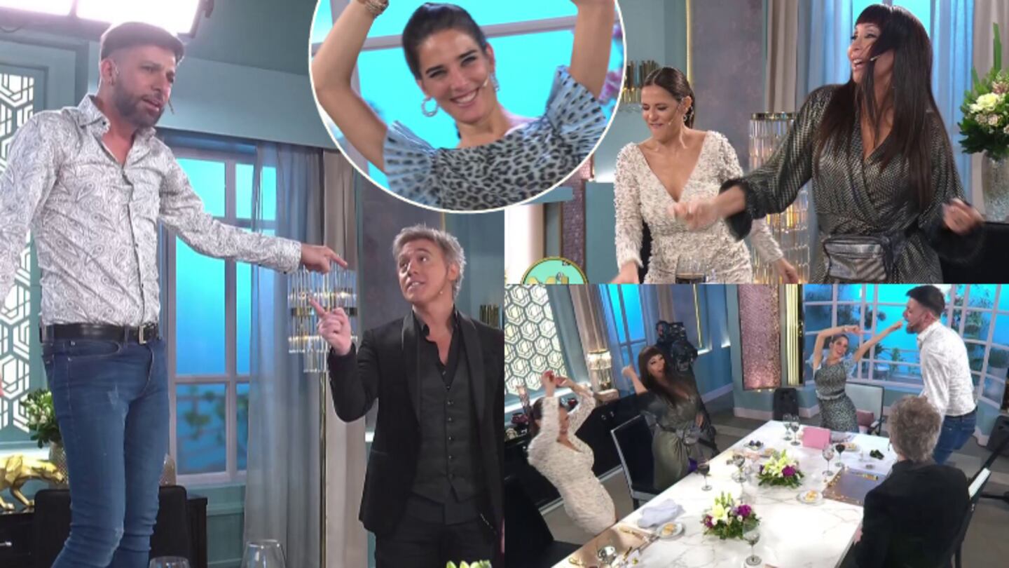 Todo comenzó cuando el humorista entonó uno de los éxitos del cantante... ¡y terminó subiéndose a la silla por pedido de Moria! "Ahora tóquense los bultos", lanzó ella, con desfachatez mientras Juana y sus invitados estallaban de risa mientras bailaban una de las canciones del "Bon Jovi argentino".