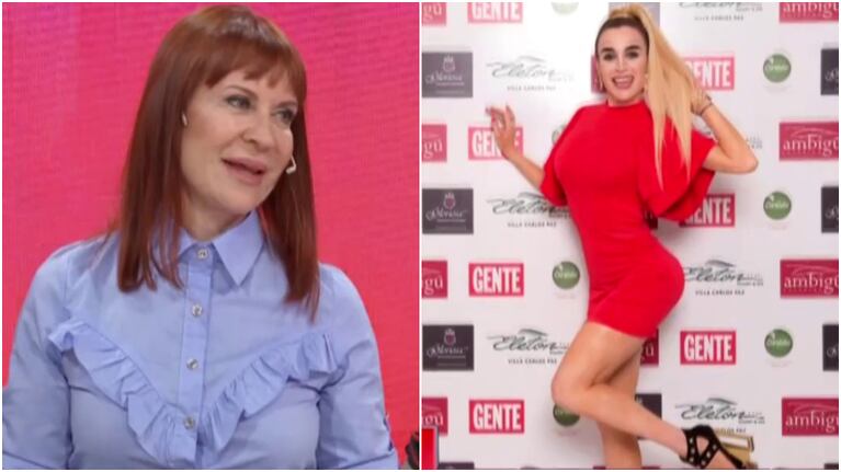 “El vestido es bastante discreto y yo hoy la tengo que felicitar”, aseguró, sorprendiendo a Ángel de Brito y a sus panelistas, sobre el vestido rojo que eligió la humorista. “¡Me llevó 7 años esto!”, comentó, con humor en referencia al enojo que le provocó muchas de las críticas que le hizo a la imitadora.
