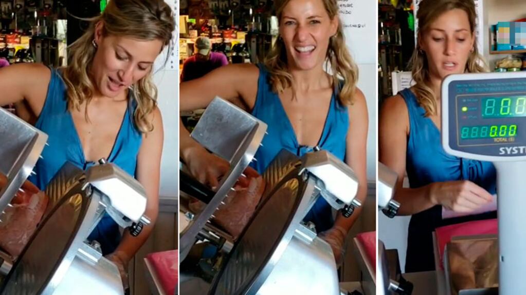 "Vamos a hacer un sándwich en el local de papá. Ponemos el film, prendemos la máquina, tenemos que tener cuidado con la máquina, y cortamos finito. Ahora vamos con el queso. Y al jamón no le puede faltar el queso", dice Mica, en el video que se la ve relajada, trabajando en el almacén de su papá.