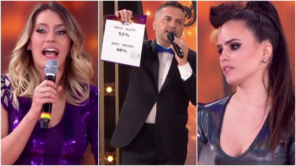 De esta manera, Viciconte y Morandi quedaron a merced de la elección de sus seguidores y tras el último corte, Ángel de Brito y Laurita Fernández develaron el misterio: "Con el 52% de los votos, quien sigue en Cantando 2020 por decision de ustedes, es la pareja de Mica Ciciconte y Alito", anunció el presentador.