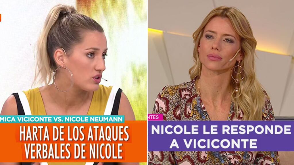 Luego de los picantísimos likes de Nicole, al día siguiente tanto Viciconte como Neumann dispararon chicanas en simultáneo por TV. Mientras que la ex Combate se sentó en el piso de Intrusos y habló de la mala relación entre ambas, la ex de Cubero hizo lo propio en Cortá por Lozano, donde es panelista.