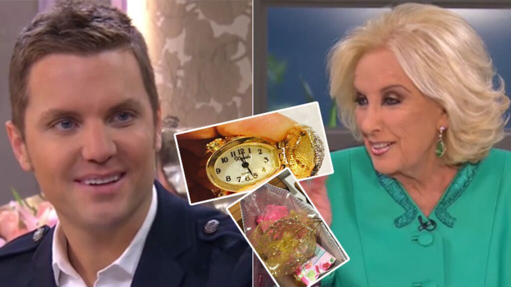 "¿Cómo esta tu hijita, mi admiradora?", preguntó la conductora a su invitado, apenas dos semanas atrás. "Las dos son ahora. Hay una que está fanatizada porque mi hermana le contó que vos tenés un anillo que adentro es reloj. ¡Eso la tiene descerebrada a la nena!", comentó el conductor de Infama, sin esperar la reacción desprendida de Mirtha. "Se lo voy a mandar de regalo", aseguró ella en risas. "¿En serio?", retrucó él. ¡Y así fue!
