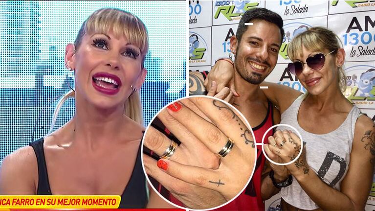 Cuando parecía que Mónica Farro (41) volvería a integrar el grupo de las solteras más codiciadas, su novio se dio cuenta y se la jugó por amor con una emotiva propuesta de casamiento, en medio del programa radial que la uruguaya tiene en AM La Salada. Conmovida por el romántico gesto de Leandro Herrera (30), la exvedette aceptó entre lágrimas la propuesta y luego se calzó el anillo de compromiso.