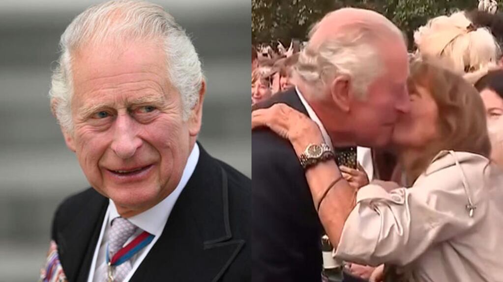Carlos III saludó a la gente que se agolpó a su paso en el Palacio de Buckingham tras la muerte de la reina Isabel II y una mujer rompió el protocolo al besarlo.