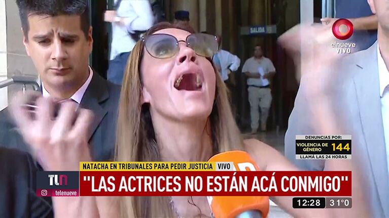 “Fui violada en reiteradas veces. ¿Hace falta que tenga que dar detalles? ¿Qué querés que me desmaye? ¿Qué querés que me largue a llorar? Ya me descompuse. A la víctima se la destroza acá. ¡¿Cómo no voy a llorar?! ¡Me violaron! ¡Me violaron! ¡Me violaron!”, exclamó Natacha, antes de abandonar el móvil de Telenueve.
