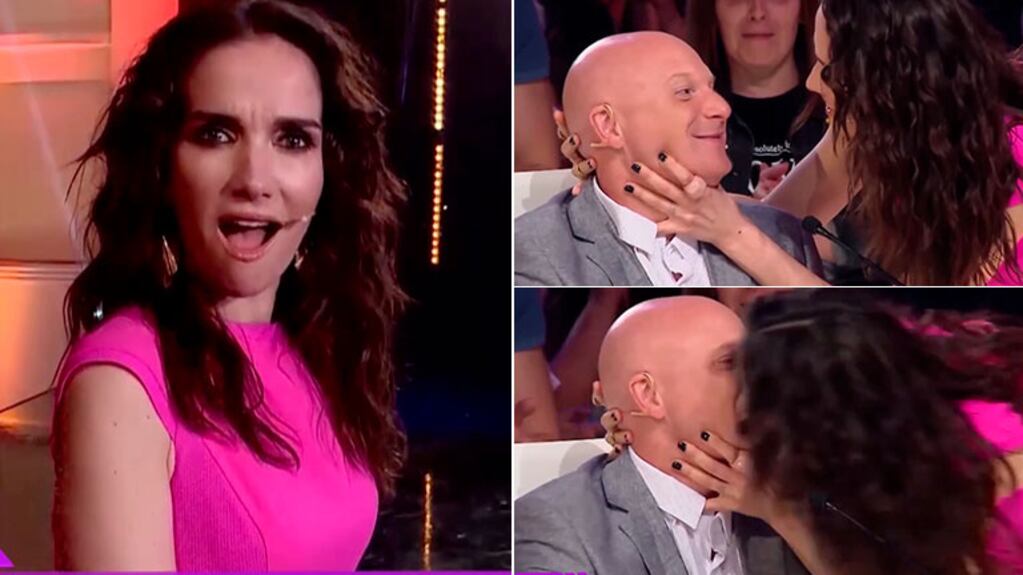 Conmovida con la voz del concursante Diego Coronel, la actriz y cantante esperó a que termine de cantar para ayudarlo en la votación. ¿Qué hizo Oreiro? Usó sus armas de seducción para persuadir al exigente jurado Orlando Petinatti ¡dándole un beso!
