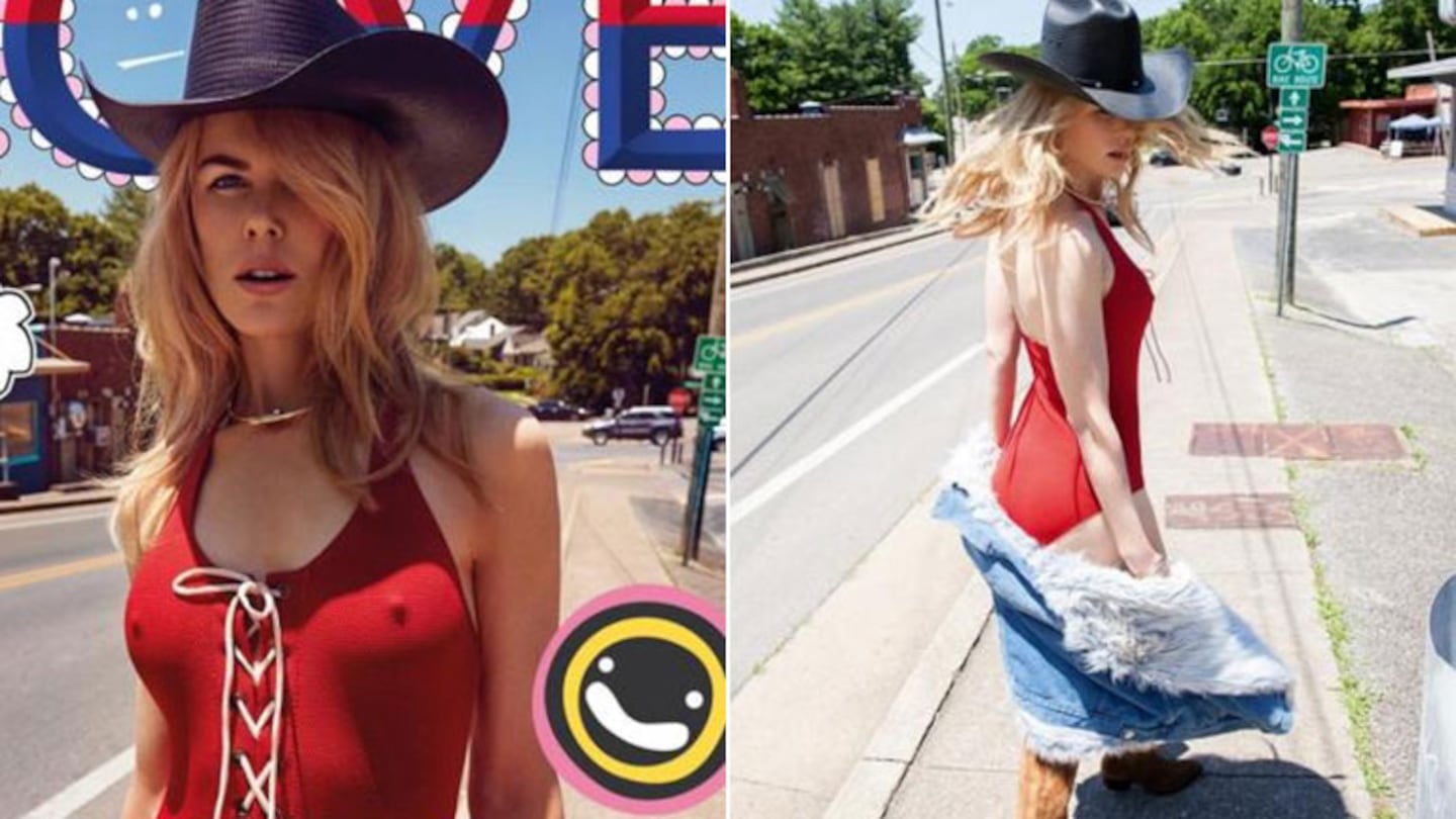 A los 50 años, la actriz de Hollywood desplegó sus encantos durante la sesión de fotos que le hizo Carin Backoff, en la que jugó con un sombrero de cowboy y una malla enteriza colorada que contorneó a la perfección su silueta. Tanto que al ver las imágenes Nicole, sintió pudor.
