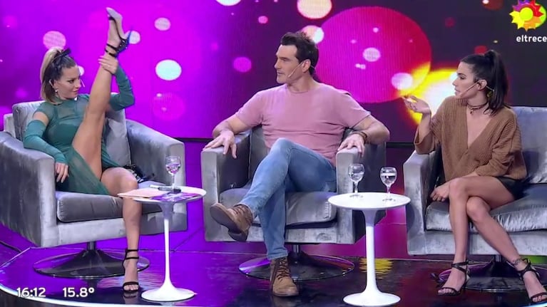 Invitada a Bienvenidos a bordo, Noelia Marzol sorprendió a Laurita Fernández con su sensual outfit y los zapatos que lució en el piso con su pancita de cuatro meses. Sin embargo, la bailarina casi muestra de más.