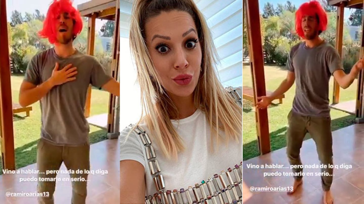 "Vino a hablar, pero nada de lo que diga puedo tomarlo en serio", escribió Noelia Marzol en el video que subió a sus historias, en el que se lo ve a Ramiro Arias bailando, con una peluca, una sugerente canción. "Quiero saber de tí, quiero saber si nuevamente me vas a amar...", dice la letra del tema que le dedicó el futbolista a Noelia, mientras ella lo filmaba, risueña.