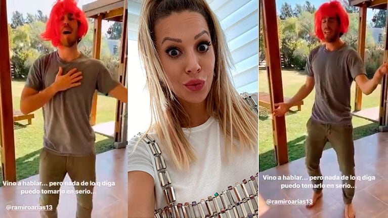 "Vino a hablar, pero nada de lo que diga puedo tomarlo en serio", escribió Noelia Marzol en el video que subió a sus historias, en el que se lo ve a Ramiro Arias bailando, con una peluca, una sugerente canción. "Quiero saber de tí, quiero saber si nuevamente me vas a amar...", dice la letra del tema que le dedicó el futbolista a Noelia, mientras ella lo filmaba, risueña.