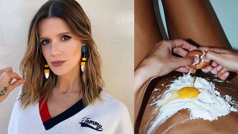 Sin dudas, sus seguidores se sorprendieron cuando Violeta compartió una particular foto luciendo su pancita de cinco meses de embarazo. La actriz posteó en Instagram una foto boca arriba, en la que se puede ver harina en su panza y un huevo rompiéndose... ¡como si estuviera cocinando, pero sobre su vientre!