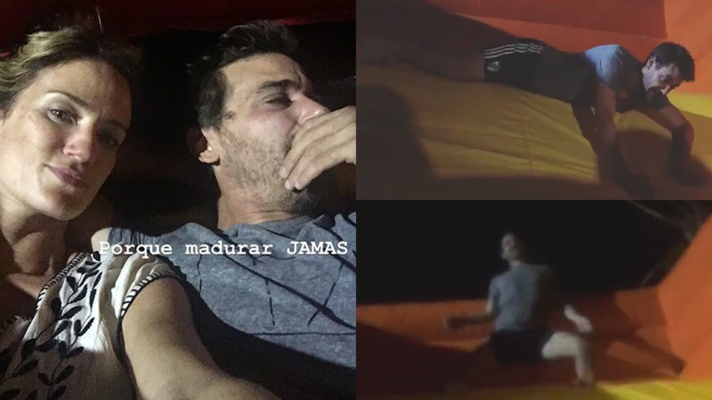 En medio del estrés del viaje, la pareja tuvo una idea muy divertida: alquilar un inflable en su casa. “Alquilamos un inflable porque madurar jamás”, escribió la conductora en una foto junto a Pedro recostados en el enorme juego.