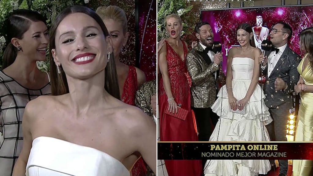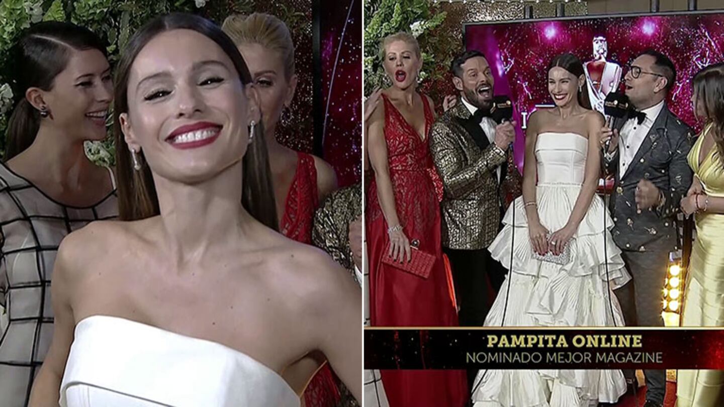 La modelo está nominada en la terna Mejor conducción femenina y Mejor Magazine, por el ciclo que condujo el año pasado. Diosa súper elegante, Pampita revolucionó la alfombra roja con un distinguido vestido del diseñador Javier Saiach.