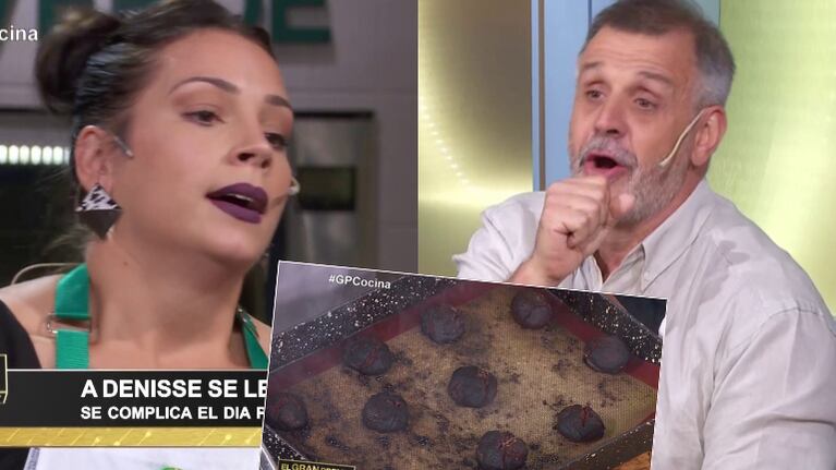 Denise, la participante que tenía esa preparación, sin poder armar un “plan B” admitió su error. “Precalenté el horno antes y las mandé a 250° antes de cocinarlas. Ese fue el error”, admitió, avergonzada. Christian Petersen, comprensivo, probó las galletitas a las que les habían tirado azúcar impalpable arriba para salvarlas, pero su crítica fue rotunda. “Me hacen acordar mucho a las briquetas, que es un tipo de carbón”, lanzó. ¡Qué momento!