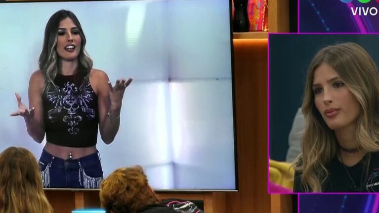 “Chicos, perdón que estoy mirando la pantalla, pero esto nunca lo vi”, se sinceró la exhermanita, asombrada de cómo se mostraba junto al resto de sus compañeros y los looks que lució.