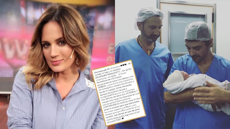 La modelo acompañó la postal con un emotivo texto: “Mis 3 hombres… Mi marido, mi hijo y mi obstetra Dr. Sandro Persichetti. Tan genio, respetuoso, tranquilo. ¡Nueve meses llenándome de información, escuchándome todos mis miedos y mis deseos, que eso fue lo más importante, me acompañó y respetó mis tiempos y los de mi cuerpo! ¡Jamás me asustó, siempre llenándome de paz y tranquilidad! El que en los momentos más difíciles me decía que YO PODIA, ¡y me permitía moverme libremente en una sala de partos! ¡Ojalá existieran 1.000.000.000 de médicos como él! Que amen lo que hacen pero que sobre todas las cosas respeten a la Mujer y sus tiempos para parir. Eternamente en mi corazón, ese abrazo en sala de parto cuanto todos juntos logramos mi tan deseado PVDC”.