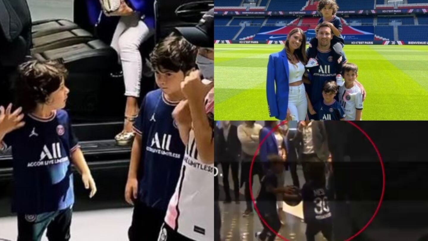 Una cámara registró la riña que tuvieron los hijos menores de Leo, por una pelota mientras el ídolo del fútbol charlaba con dirigentes antes de entrar por primera vez a estadio del club francés.