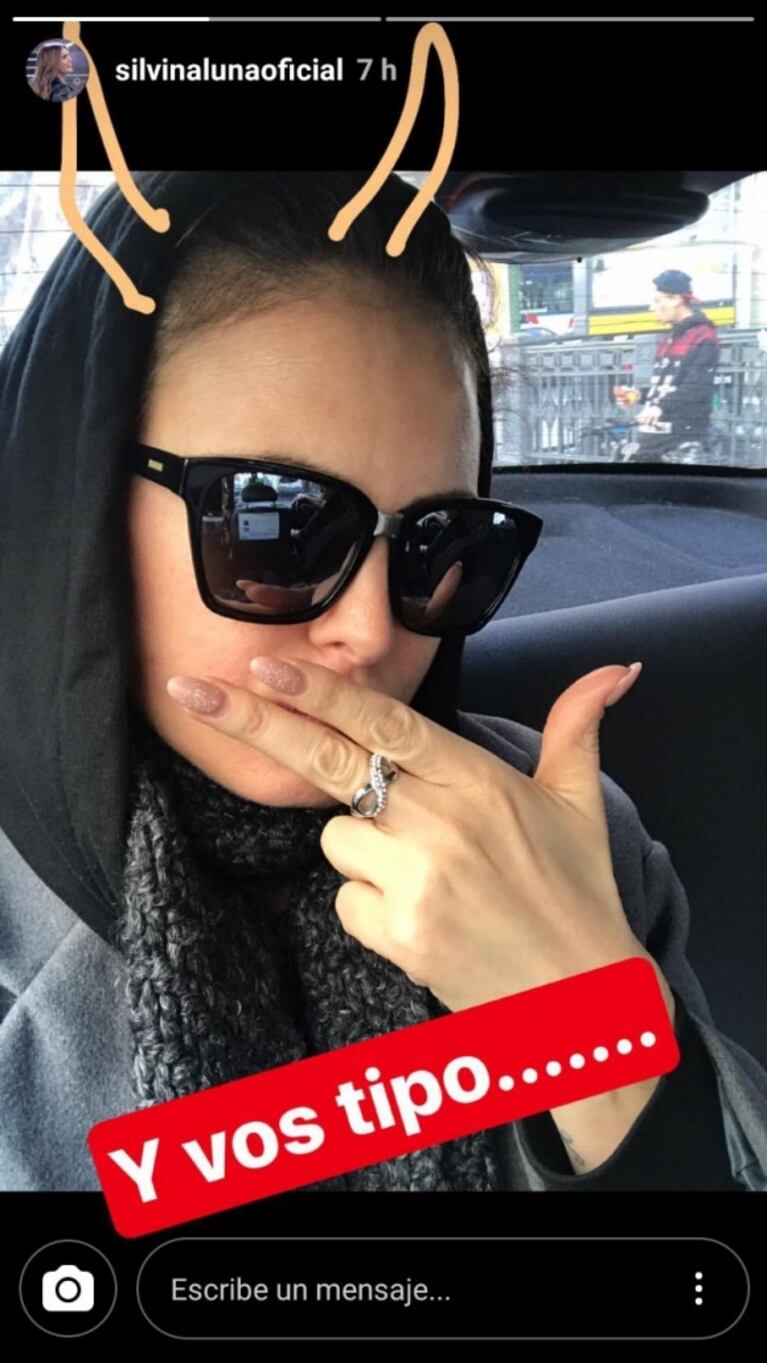 Pero ahora fue por más y la rosarina subió a su cuenta de Instagram Stories una picante imagen en la que se la ve con cuernitos, un sugerente gesto apoyándose dos dedos sobre la boca y la frase: "Y vos tipo...".