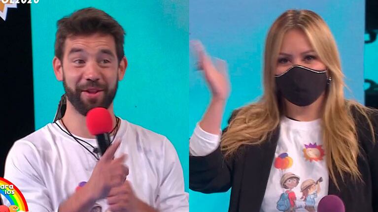 Al presentarlos, Mariana Fabbiani adelantó: “¡Está picante esto! ¿Están compitiendo por algo?”. Y entonces, el actor confió entre risas la divertida “amenaza de la cantante : “Recién fuera de cámara le dije 'vamos a competir' y me dijo 'si me llegás a ganar, te pongo un 1'. O sea, que no puedo”.