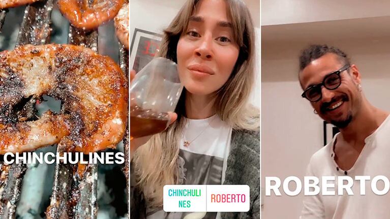"Como si fuera poca la tentación ya", escribió la actriz y cantante en un video en el que se ve el asado que estaba haciendo el futbolista. Luego enfocó las achuras y se detuvo en los chinculines, mientras que Daniel le preparaba un fernet.