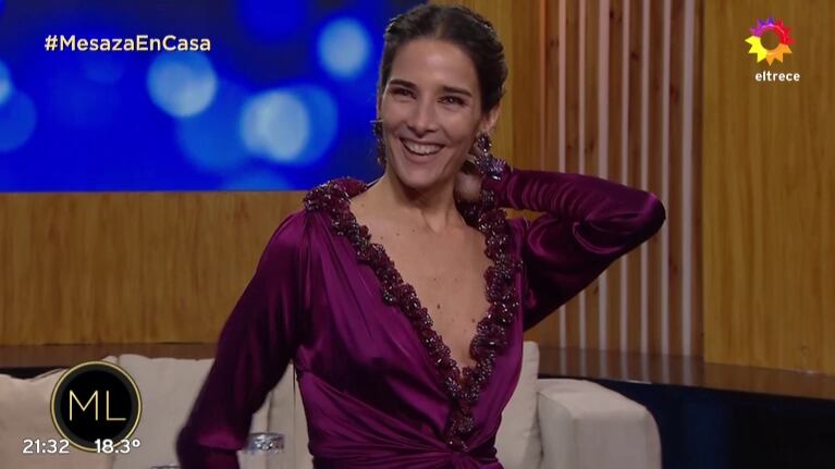 “¡Miren lo que es esto, una belleza! No sé si ven todo este detalle. No tengan miedo de mostrar todo lo que poseemos. Es muy lindo”, comenzó diciendo la nieta de Mirtha Legrand, feliz por el outfit color vino que le preparó el diseñador Gino Bogani.