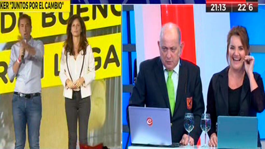 “Prohíbo la pantalla partida, señora directora”, dijo entre carcajadas al ver su imagen junto a la de su exmarido y Analía.