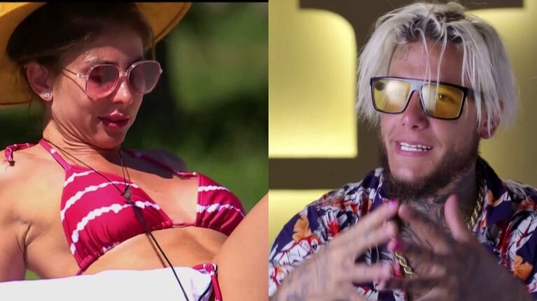 Algo sonrojada por la mirada fija de su compañero, Majo le marcó los puntos al hijo de Mariana Nannis y Claudio Paul Caniggia: “Si me mirás así yo no puedo tomar sol, me pone incómoda”, señaló.