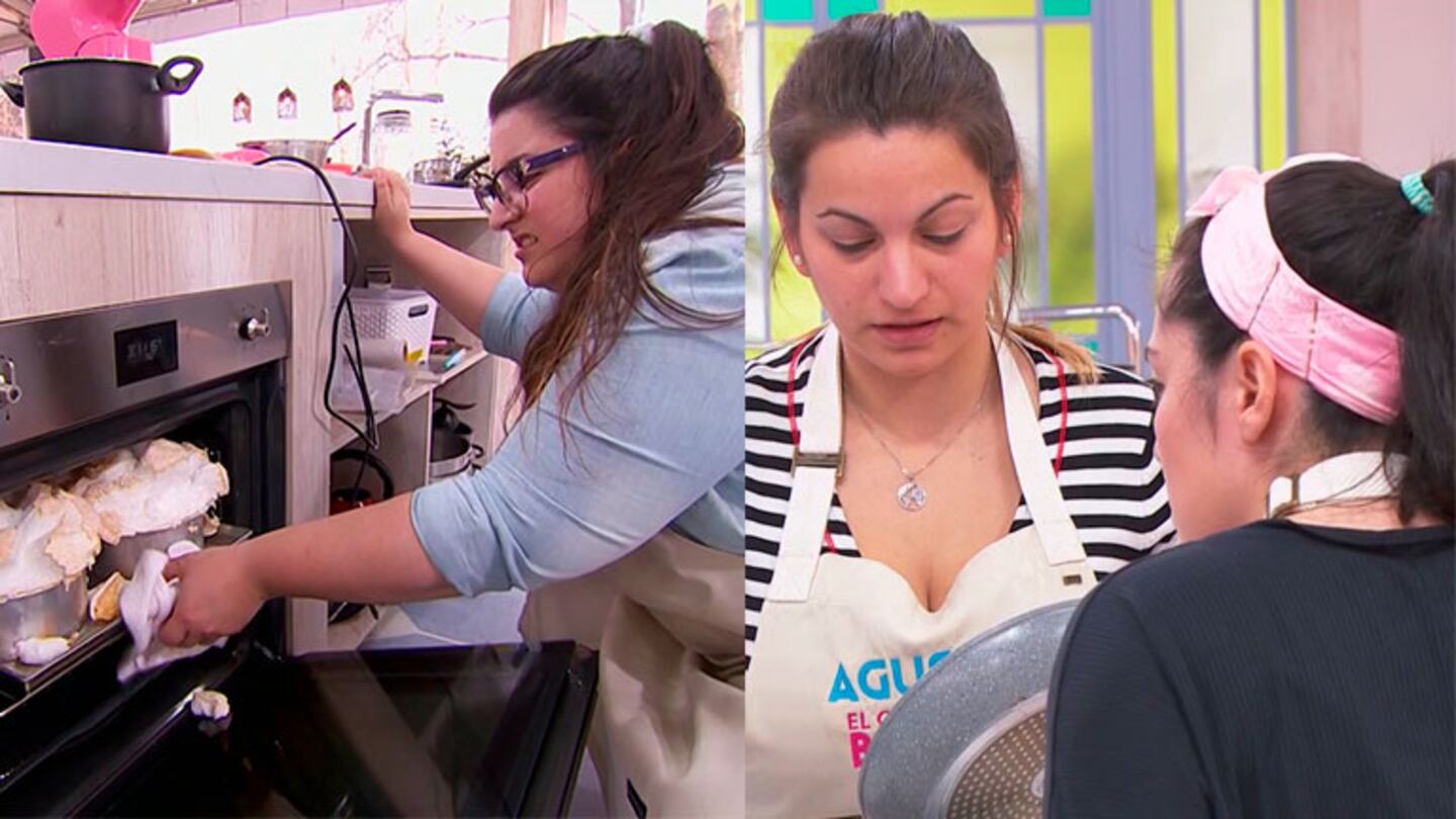 Los cuatro semifinalistas de Bake Off debían cocinar una isla flotante rellena, la especialidad de la jurado Pamela Villar. Agus realizó las mezclas correspondientes y mandó la preparación al horno con total confianza. Pero al revisarla, se encontró con un espectáculos desesperante ya que las claras batidas se desbordaron y casi arruinan su postre.