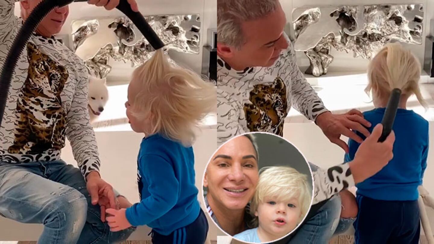 El coreógrafo publicó en la red social un video en el que aparece peinando con una aspiradora al pequeño: “Amarlo tanto, él se prende en todas, un capo”, escribió Flavio junto a la grabación.