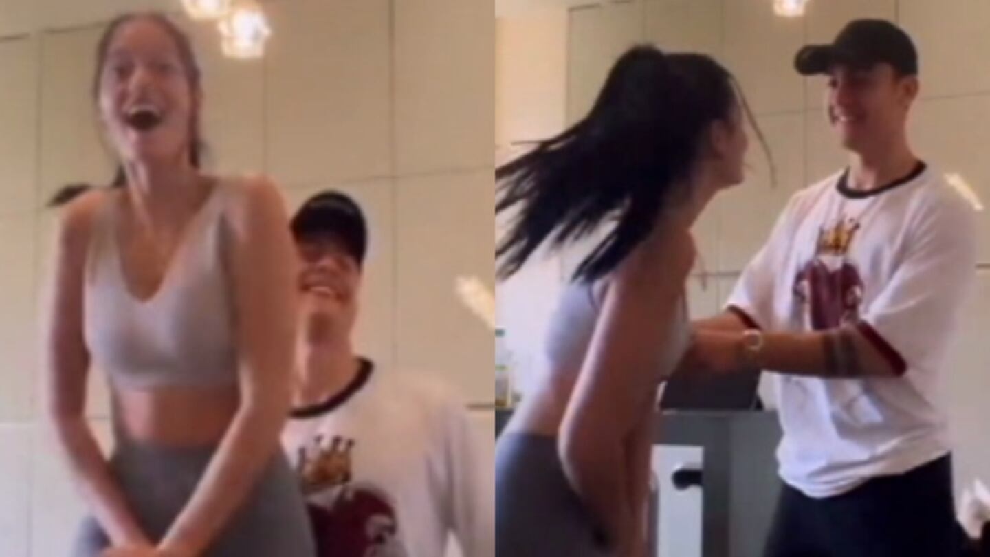 La pareja hizo un challenge que consiste en que un hombre tome de la entrepierna a una mujer y la levante en el aire. "Tik Tok se puso la gorra, como siempre, y me lo borró", escribió la hija de Catherine Fulop junto al video en cuestión que publicó en Instagram.