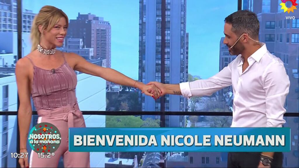 “¡Hola a todos! ¡Feliz día del trabajador para todos!”, agradeció Nicole, que se incorpora al ciclo tras su escandalosa salida de Cortá por Lozano, el programa de Verónica Lozano, en las tardes de Telefe.