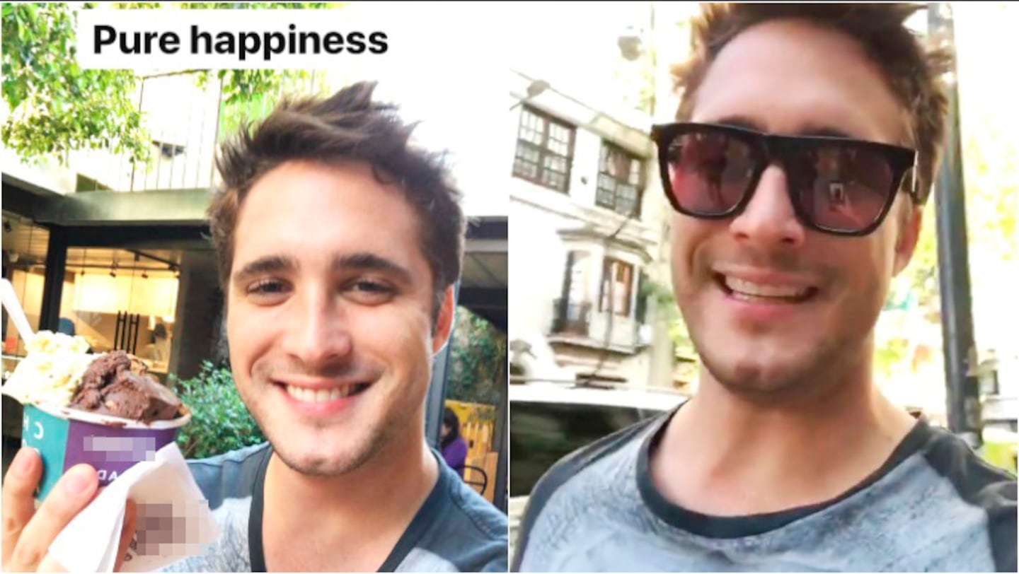 "Estamos en Buenos Aires, en un break (recreo) del comercial y, ¿adónde vamos? Adivinen. ¿Qué haría yo en un break en Buenos Aires?", se lo escucha decir en un video que subió a Instagram Stories. Minutos más tarde, el intérprete mexicano publicó una foto con un vaso de un cuarto de kilo de helado, bajo el título "Pure happiness (Pura felicidad)".