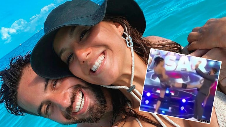 ¿Qué pasó? Una de las chicas que forman parte del programa quiso romper una tabla de madera que Nico sostenía con ambas manos, pero le pifió ¡y le pegó ahí abajo! Lejos de dejar pasar el momento, Flor lo replicó a través de sus historias de Instagram y se refirió a la zona genital de novio.
