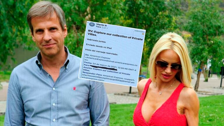 "Ni idea, eso no salió de mi e-mail. ¿Qué es? ¿G-mail? Tengo que chequear, no es de mi tablet...", fue el mensaje que Martín le mandó a la panelista del programa de espectáculos desde los Estados Unidos.