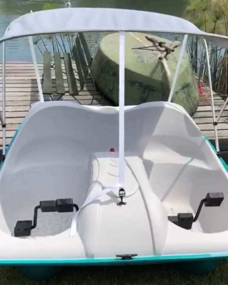 Por supuesto, la reacción se Susana fue de inmediata felicidad y muy histriónica. "¡Qué genial! Los patos no lo van a poder creer. Probémoslo. Ay, Mechi, qué lindo, me encantó el regalo", expresó Giménez, con el bote en el agua, lista para pedalear con su hija al lado, en la laguna que tiene en su casona de Uruguay, repleta de aves.