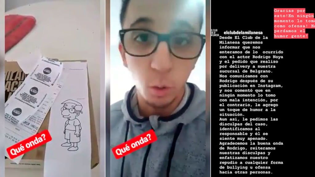 Ante la gran repercusión de la denuncia de Rodrigo, el local publicó un comunicado en su cuenta oficial de la red social. “Queremos informar que nos enteramos de lo ocurrido con el actor Rodrigo Noya y el pedido que realizó por delivery a nuestra sucursal de Belgrano”, comienza el texto.