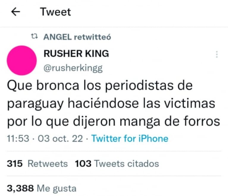 "Qué bronca los periodistas de Paraguay haciéndose las víctimas por lo que dijeron. Manga de forros".