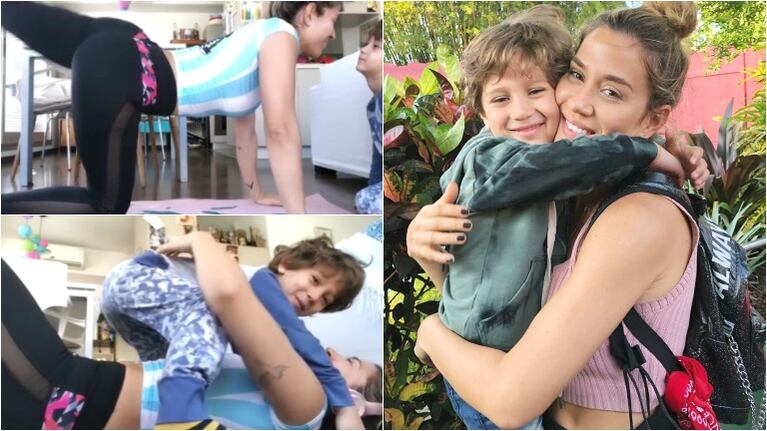 "Acá, intentando hacer ejercicios", escribió la cantante, divertida, junto a un video en la que se la ve marcando sus músculos mientras su pequeño se le pone encima para abrazarla: "Escucha música Jimena Barón", se lo escuchó al nene, con su dulce voz.