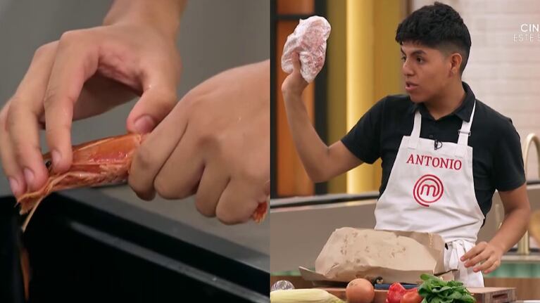 Fue un verdadero desafío al que se enfrentaron los participantes de MasterChef al tener que elegir al azar diferentes ingredientes que pasaron a través de una cinta transportadora (que estaba instalada en el medio del estudio) para deleitar al jurado con su plato especial. Y sin ocultar su asombro, Antonio López se confesó al ver que en su paquete había langostinos.