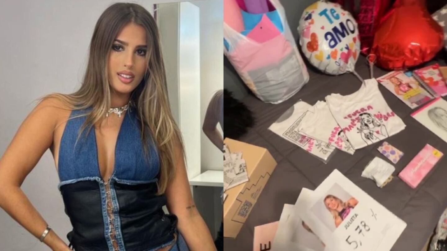 La joven mostró todos los regalitos que sus fanáticos le hacen llegar como cartitas, globos, remeras y dibujos que cuidadosamente apoyó a lo largo y ancho de su cama como un tesoro que sella el furor que generó su paso por el reality de Telefe.