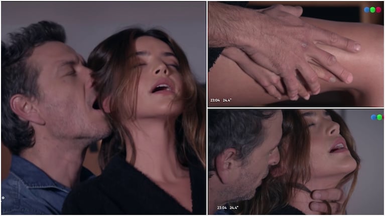 Sin mostrar demasiada piel, y haciendo muchísimo uso de la sugerencia, el rol de Calu comienza a fantasear con el personaje que interpreta Federico justo cuando está poniéndose crema. Tantas caricias hacen que Luciana termine imaginándoselo a Omar besándole el cuello y tocándole el cuerpo de la forma más sensual. ¡Prendida fuego!