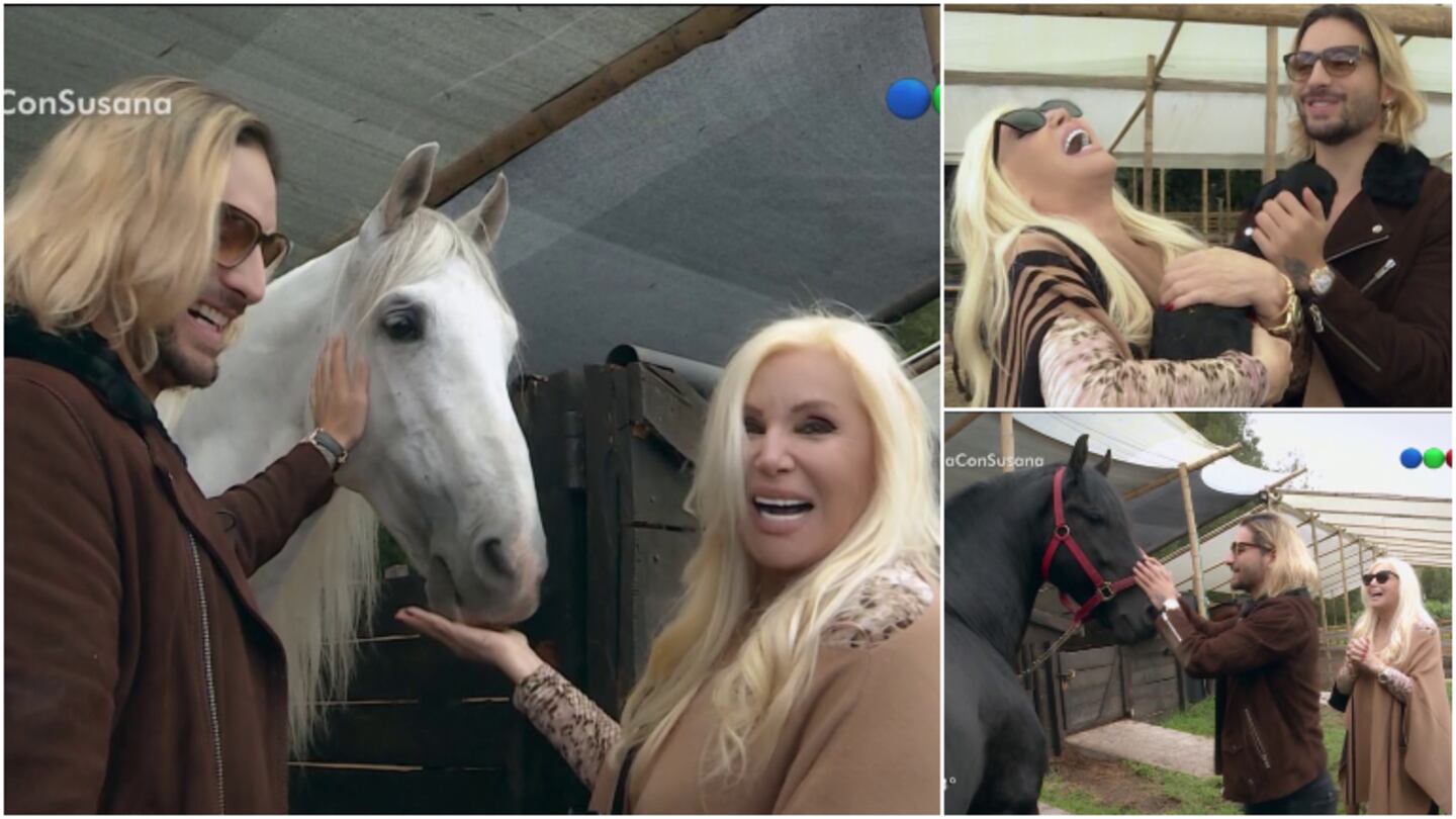 “Este es mi lugar favorito de la granja. Aquí tengo a mis bebés, mis consentidos. Cuando vengo aquí libero mi estrés con mis animales, con mis caballos”, le dijo el cantante antes de mostrarle su establo y hacer que Susana le de comer a los equinos que llevan nombres inspirados en la mitología griega como Apolo, Zeus o Hércules. “Tiene una cola genial para hacer un postizo”, lanzó divertida la animadora al ver al caballo preferido del colombiano.