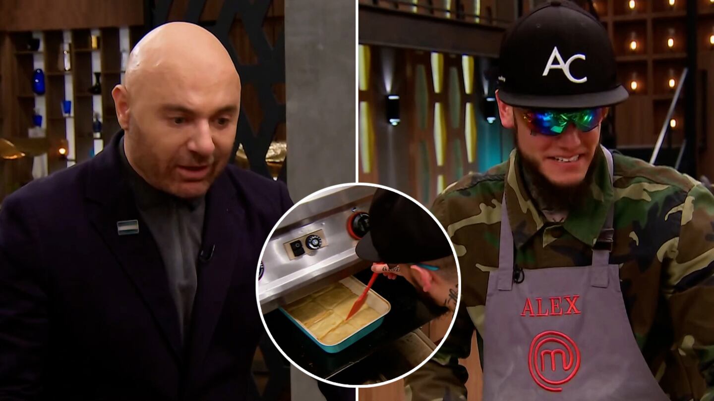 En el último programa de MasterChef Celebrity 2 (Telefe) a Alexander Caniggia le tocó preparar unos riquísimos alfajores patagónicos. Sin embargo, la masa no le salió como esperaba. "Mirá, parece un sándwich esto", dijo mientras abría el horno y tocaba con una espátula la preparación.