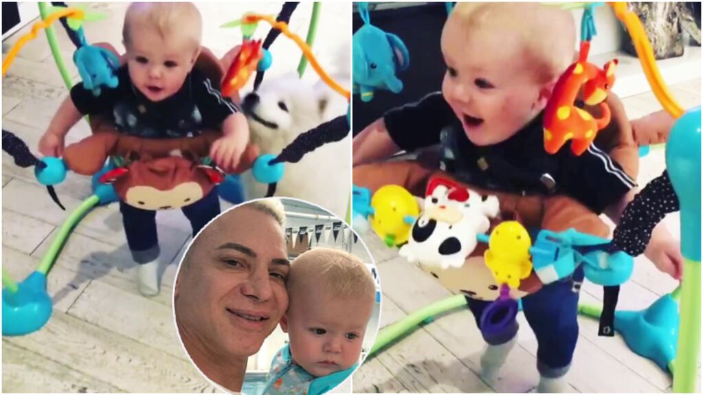 “Este va a ser acróbata, ya es un hecho”, escribió Flavio junto a las tiernas imágenes de su nene en un jumper saltarín, un tipo de juguete didáctico que estimula el desarrollo motriz y la coordinación corporal de los bebés a través del rebote.