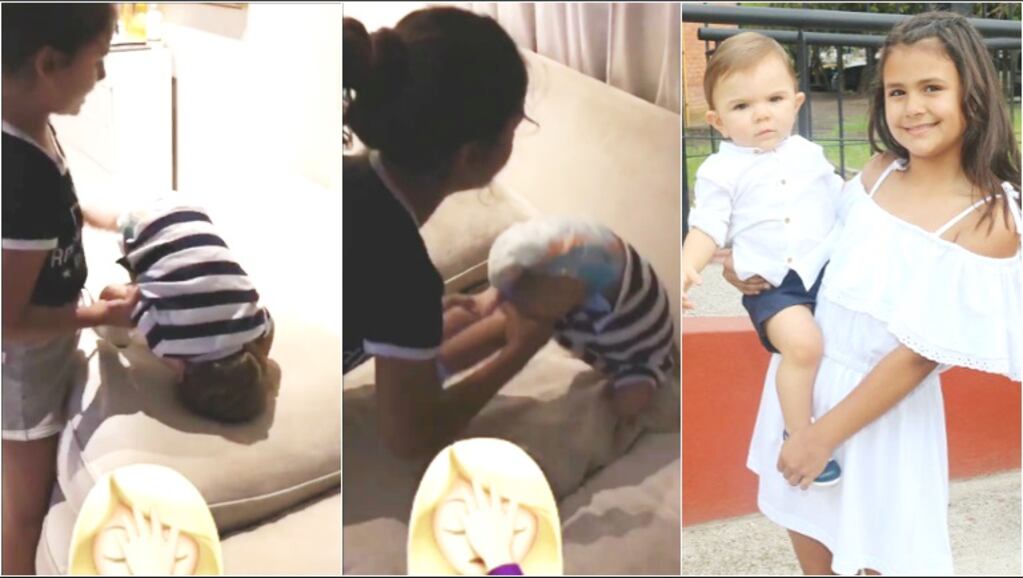 Y fiel usuaria a las redes sociales, la periodista compartió con sus seguidores de Instagram un tierno video en el que se la ve a la niña enseñándole a su hermanito a hacer la vuelta carnero, mientras el niño se ríe con ella.