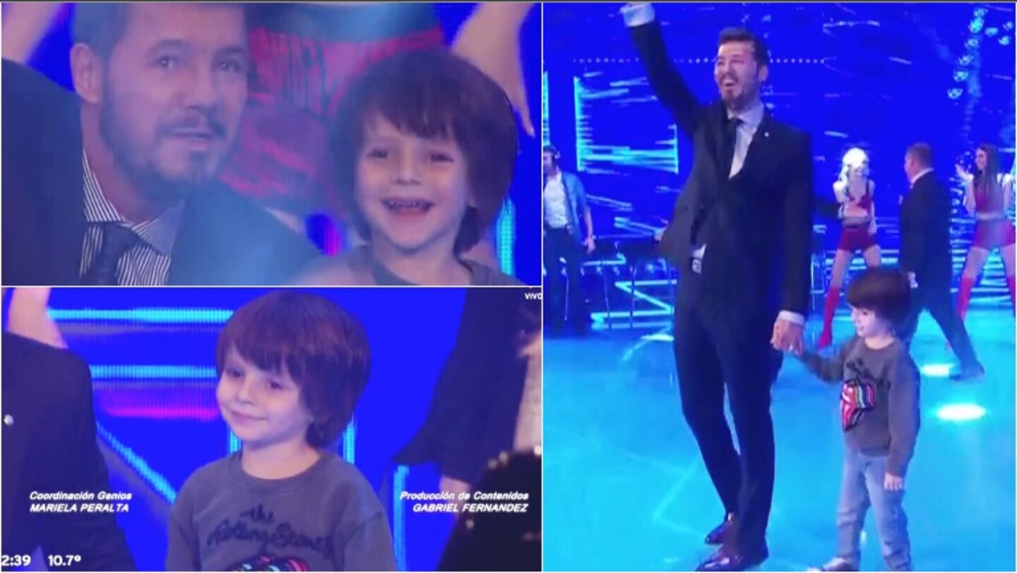 La apertura de Genios de la Argentina tuvo una sorpresa especial. Marcelo Tinelli ingresó al Estadio Aldo Cantoni de San Juan de la mano de Lorenzo, el hijo que tiene con Guillermina Valdes.