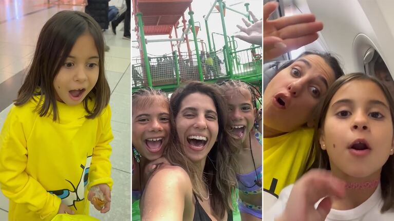 Y las caras de las nenas, tan sorprendidas como felices por sus vacaciones, enternecieron tanto a Cinthia como a sus fans.