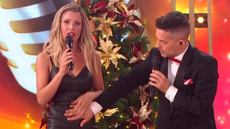 "Es como que ella corre y no se le mueve nada, queda todo en su lugar", contestó la novia de Nicolás Cabré. Y, acto seguido, De Brito protagonizó una tremenda escena ¡tocándole la pancita!