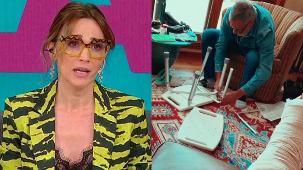 La conductora compartió con sus seguidores cómo su marido le armaba una silla ortopédica para poder ducharse. “Corchi el constructor”, lanzó con humor, junto a una foto en la que aparece él concentrado armando las partes y ella, luciendo su pierna enyesada como su silla de ruedas.