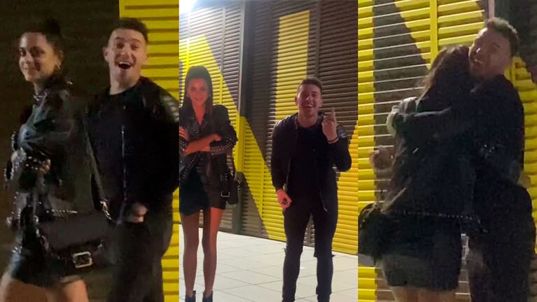 Tanto la influencer como el exlocutor de La Academia estaban con looks total black, y se quedaron pasmados cuando Pampito los saludo desde arriba de un auto después de salir de Soy tan biutiful (sábados a las 22 por radio Pop, FM 101.5).